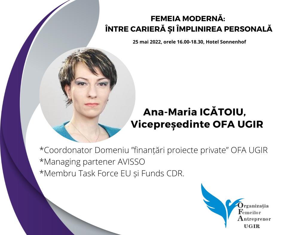 Alături de speakerii Alina Laura Ciupercovici, Ema Barbă, Alina Miron, Ana – Maria Icătoiu și Carmen Fediuc au fost abordate diferite teme precum ”De ce OFA UGIR și oportunitățile de repezentare patronală”, ”Noutăți și oportunități de finanțare pentru următorii 10 ani”, precum și tips & tricks despre cum să transformi o provocare într-o oportunitate de dezvoltare atât profesională, cât și personală.