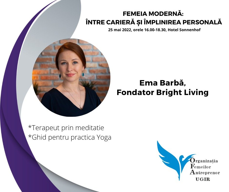 - Ema Barbă (terapeut prin meditație, fondator BRIGHT LIVING) – o sesiune de terapie prin meditație unu la unu;