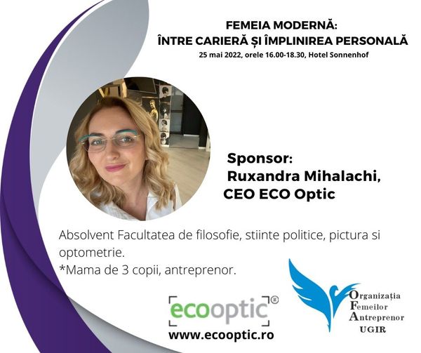 - Ruxandra Mihalachi (CEO Eco Optic) – 3 pachete cu produse specifice îngrijirii și întreținerii ochelarilor precum și o pereche de ochelari de soare;