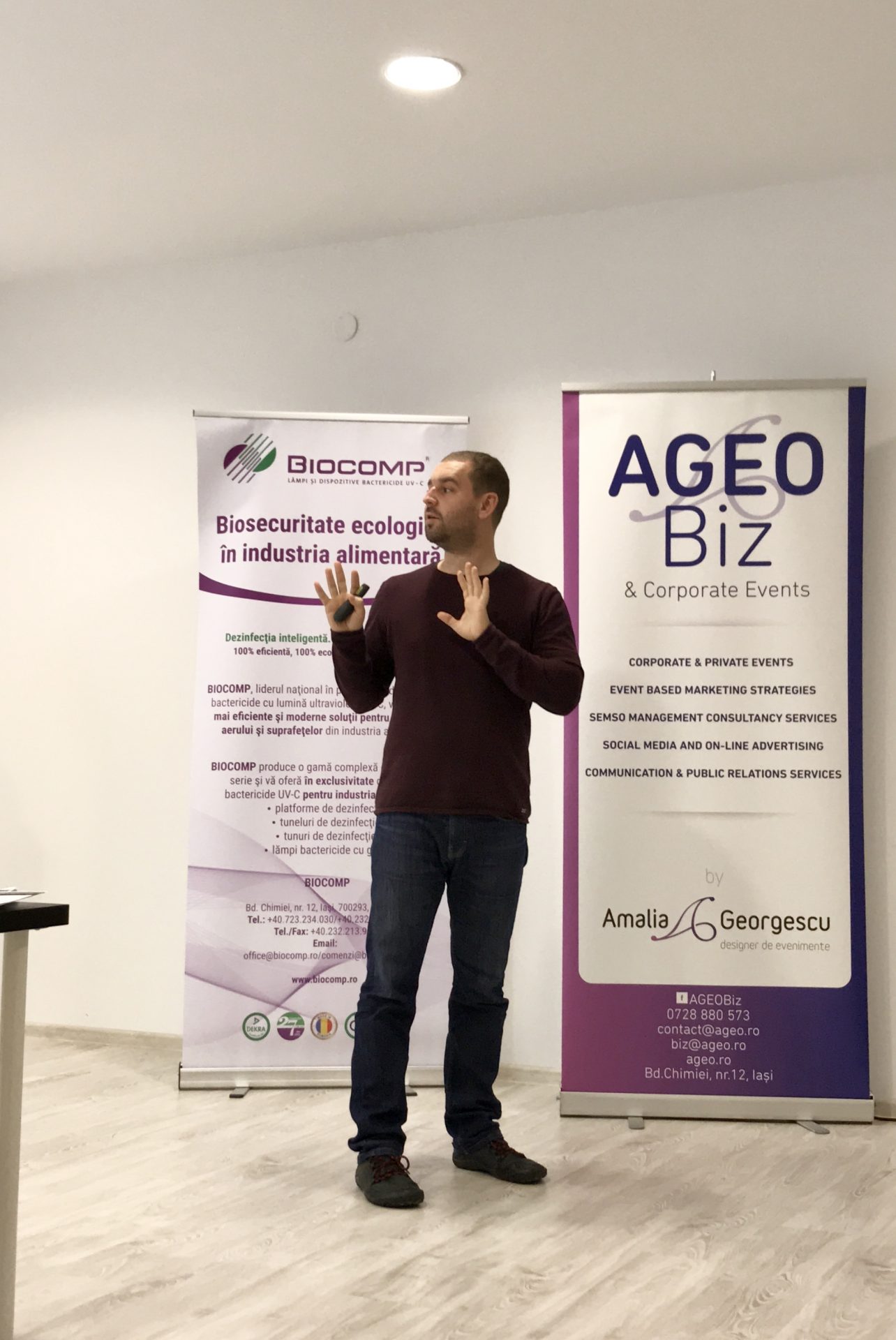 În perioada 10-13 octombrie 2019, am organizat a doua ediţie a Trainingului de Public Speaking şi Branding Personal, pentru curioși și pasionați, adresat tuturor celor care au dorit să îşi îmbunătăţească modalitatea de comunicare şi de gestionare a unui public, fie acesta cunoscut sau necunoscut. Trainerul evenimentului a fost Ec. Drd. Amalia Georgescu, owner AGEO Events.