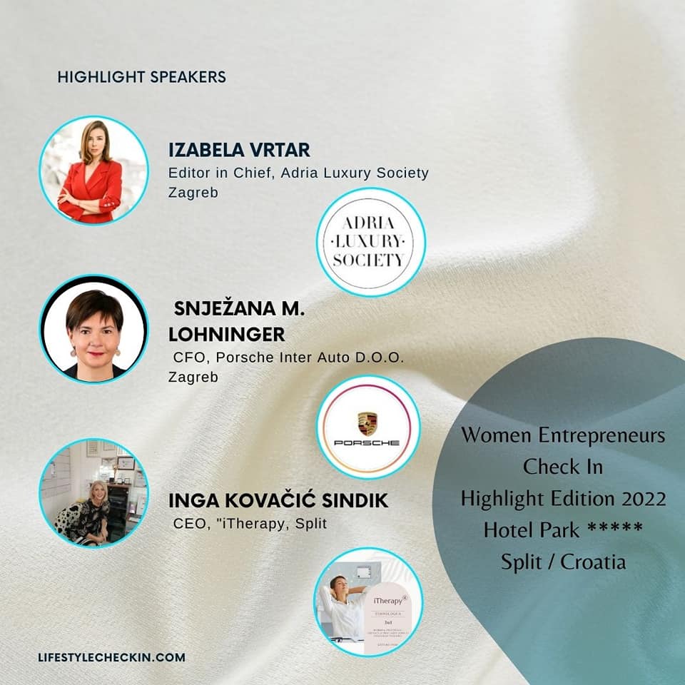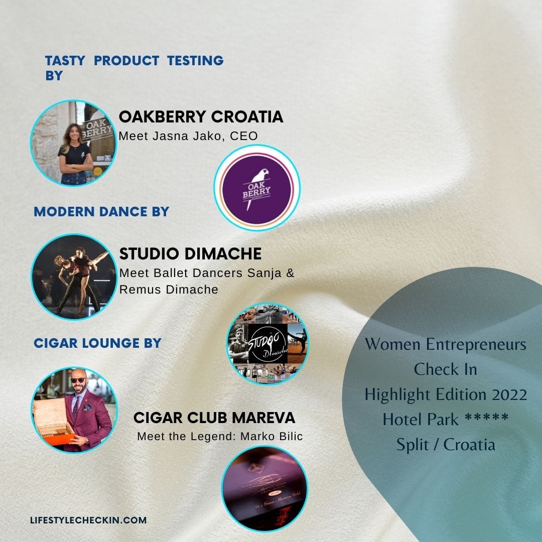 Alături de aceasta, au fost prezenți și alți antreprenori și persoane din mediul de afaceri care au avut parte de o experiență spectaculoasă, în cadrul unui hotel luxos – Hotel Park Split 5* – unde s-au bucurat de numeroase surprize și delicatese culinare oferite de organizatori și partenerii acestora. Spectacolele de dans și acrobații, tratamentele și testele faciale, delicioasele boluri de acai conturate de decorațiunile interioare extravangante au fost doar câteva elemente care au făcut ca acesta să fie un eveniment grandios.